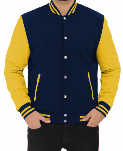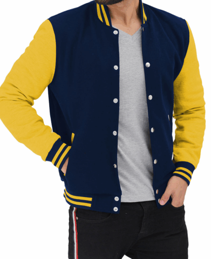 2020 Yellow And Navy Blue Varsity Mens Fleece Jacket