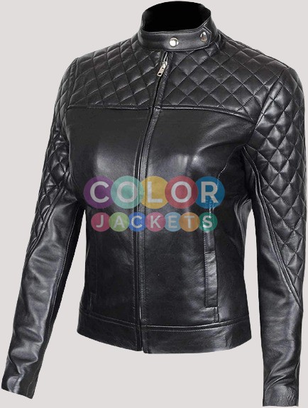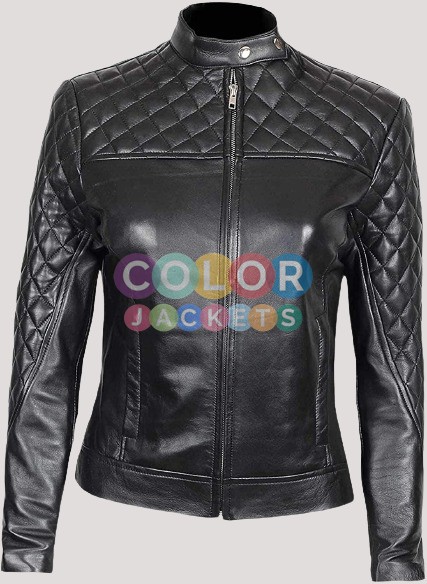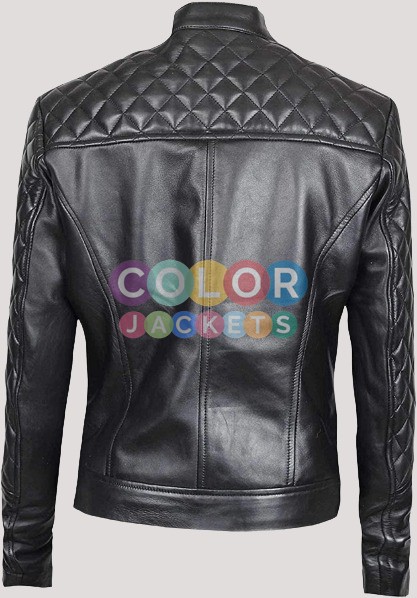 Womens Black Biker Quilted Leather Jacket