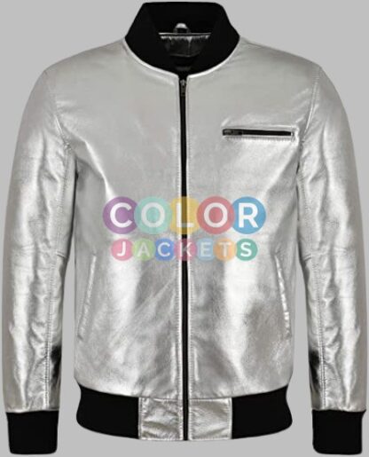 Men’s Bomber Silver Leather Jacket