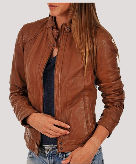 Womens Biker Brown Brown Leather Jacket