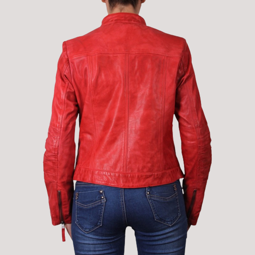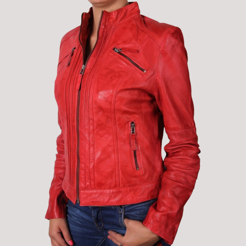 Womens Classic Biker Red Leather Jacket