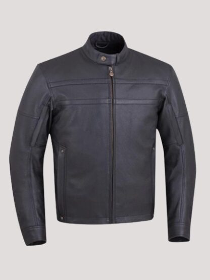 Mens Snap Tab Collar Black Fashion Biker Leather Jacket