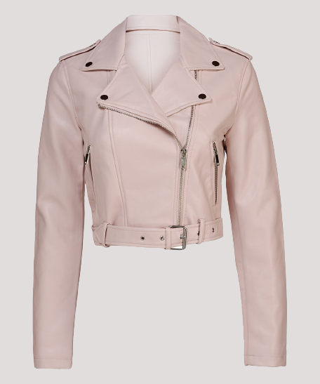 Womens Forever 21 Light Pink Crop Faux Leather Jacket