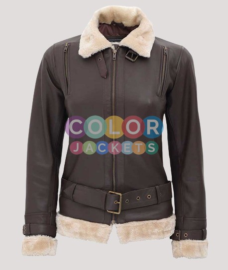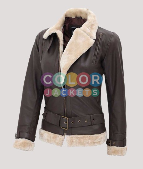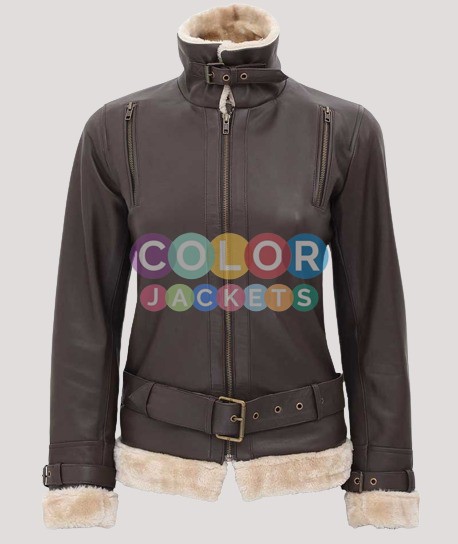 Women’s Gertrude Brown Leather Jacket With Fur Collar