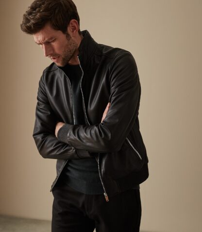 Harris Leather Funnel Neck Black Jacket