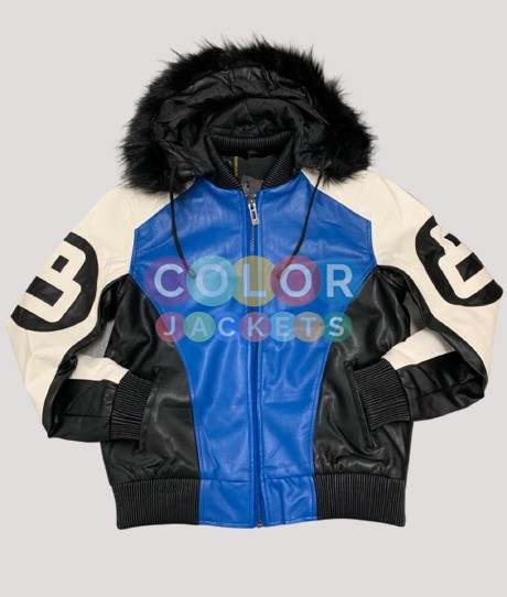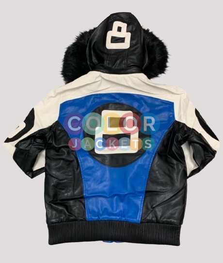 Be the first to review “8 Ball Black White And Blue Jacket With Fur Hood”