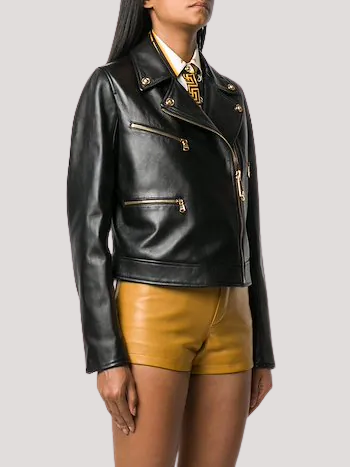 Versace Biker Gold Hardware Leather Jacket
