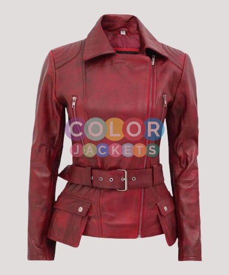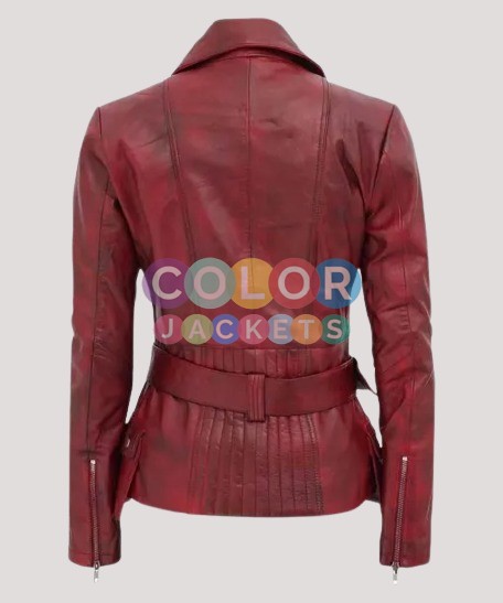 Women’s Distressed Biker Maroon Leather Jacket