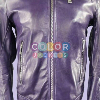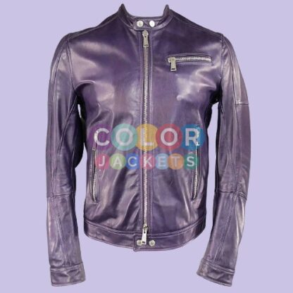Dsquared2 Purple Snap Collar Zip Leather Jacket