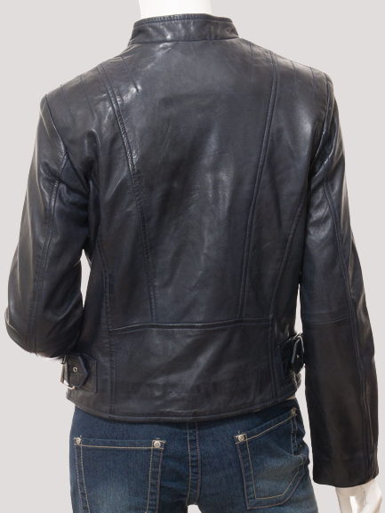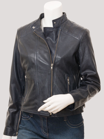 Women’s Navy Biker Leather Jacket
