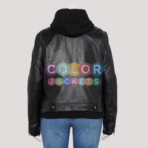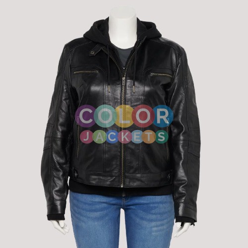 Womens Plus Size Whet Blu April Hooded Leather Jacket