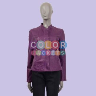 Womens Etro Zipper Purple Leather Jacket