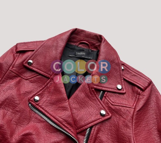 Zara PVC Rock Biker Red Faux Leather Jacket