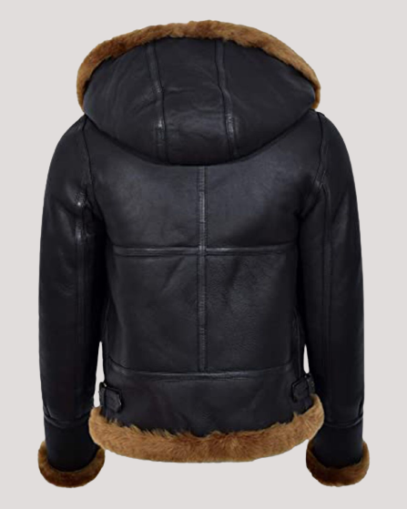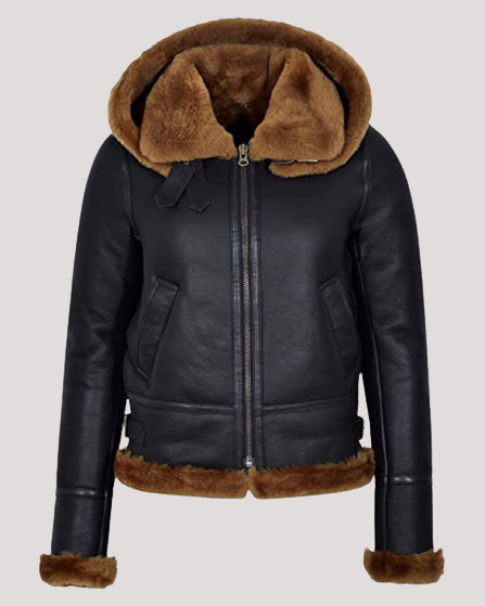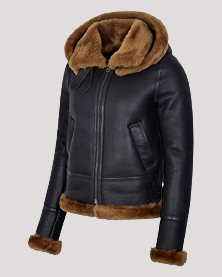 Women’s Hooded Black B3 Flying Leather Jacket