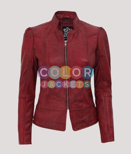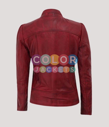 Be the first to review “Womens Slim Fit Maroon Biker Leather Jacket”