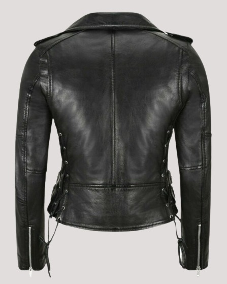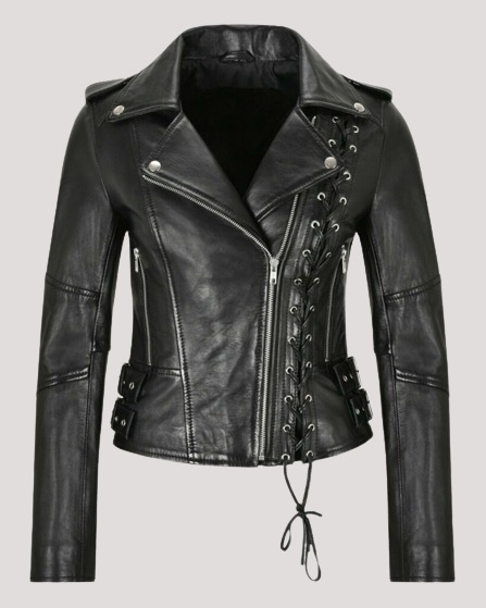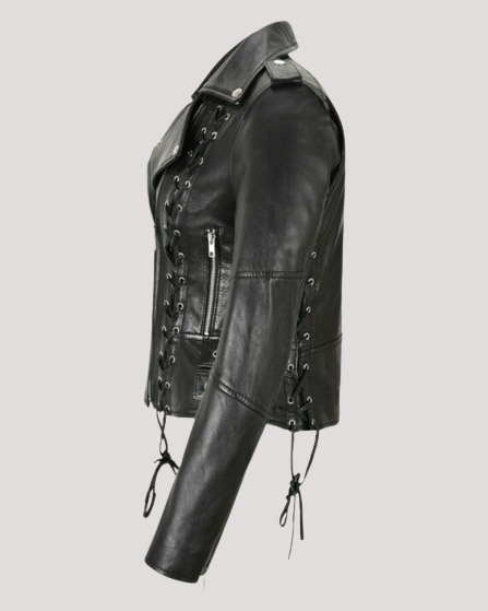 Womens Slim Fit Stylish Side Laced Biker Leather Jacket