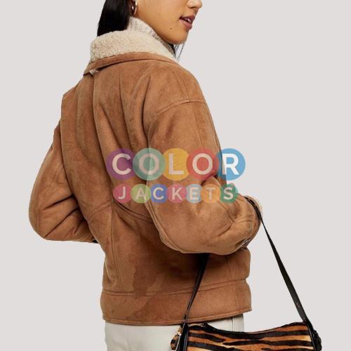 Womens Nutty Brown Faux Shearling Leather Jacket