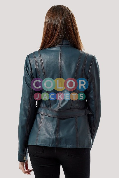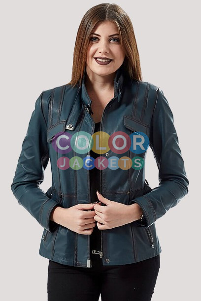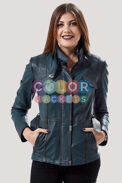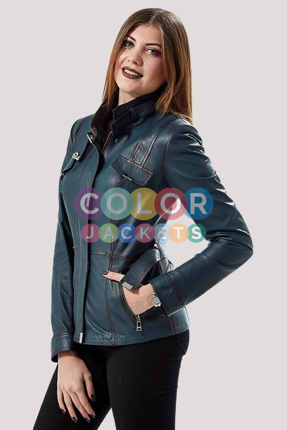 Women’s Stylish Navy Blue Biker Leather Jacket