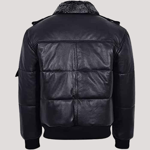 Women’s Shearling On Collar Puffer Bomber Leather Jacket