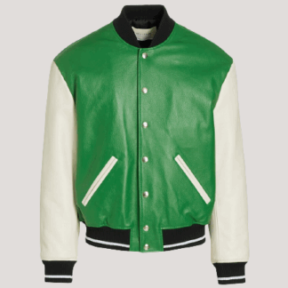 1017 Alyx 9sm Embroidered Logo Dark Green Leather Varsity Jacket